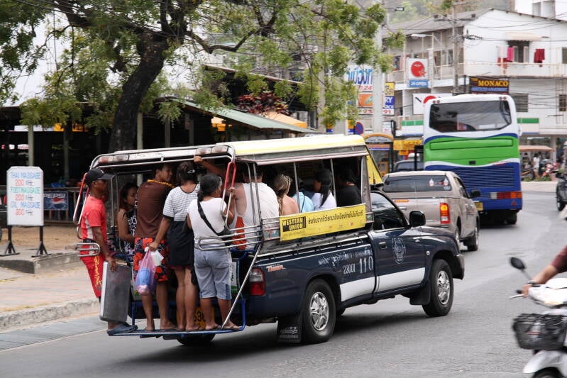 Daar zit je dan, in de achterste hoek van een zweterige, overvolle Songthaew, kijkend met een air van onmetelijke zelfvoldaanheid terwijl je je armen over elkaar slaat alsof je een complete vloot commandeert. Je geniet ervan om je tot de verwarde rugzaktoeristen naast je te wenden en plechtig te verkondigen: "Je vraagt de chauffeur nooit waar hij heen gaat. Je springt er gewoon op. Het is een kunstvorm." Laten we echter eerlijk zijn: het is geen kunstvorm. Het is een roestige Toyota Hilux met metalen bankjes achterin.